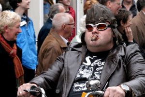 De meesten van ons reden mee met de lange leren jas, wit potje en  houten klompen. Onderweg zagen we veel blijde gezichten en werden we aangesproken of er werd getoeterd. Hierdoor werd de solexvirus alleen maar heftiger.